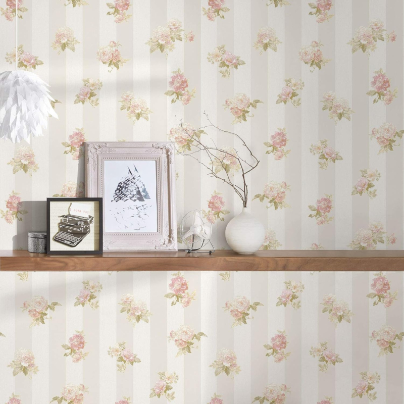 Bloemen Behang Crème Roze met Glitter AS Romantica 30447-1