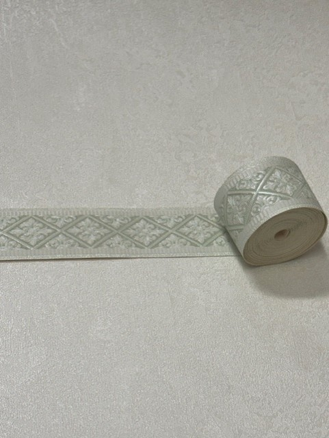 Geef je interieur een stijlvolle en klassieke uitstraling met deze groene behangrand met ornamenten van 3,5 cm breed. Het verfijnde patroon zorgt voor een elegante en tijdloze afwerking.