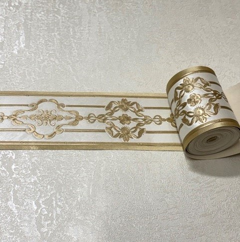 Geef je interieur een luxe en klassieke uitstraling met deze goud wit behangrand in Hermitage stijl van 6 cm breed. De subtiele glans zorgt voor een elegante en chique afwerking.