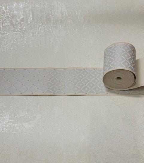 Off-white ruitjes behangrand glans 7,8 cm – 5 meter lang