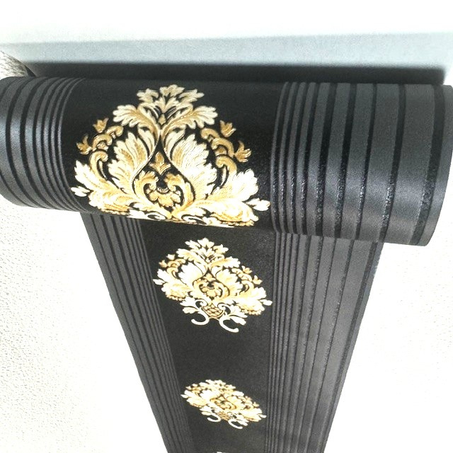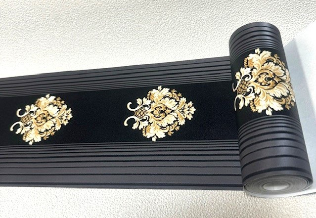 Materialen en afwerking: De rand kan een metallic of glanzende afwerking hebben, waardoor het goud echt opvalt tegen de donkere achtergrond van het zwart. Sommige barokbehangranden kunnen ook reliëf hebben, waardoor ze een nog luxere uitstraling krijgen.
